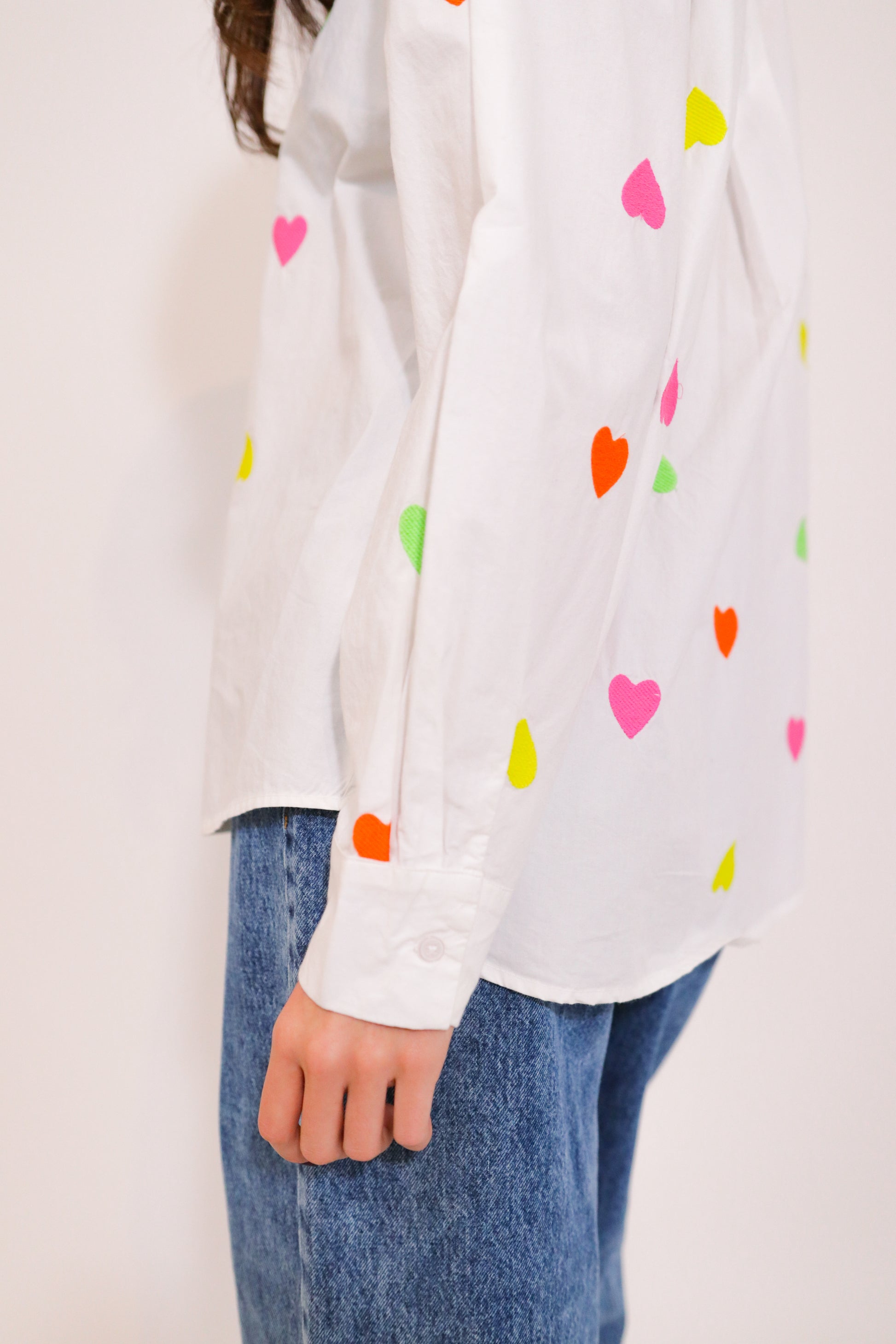 Chemise en coton léger, ornée de petits cœurs brodés multicolores.