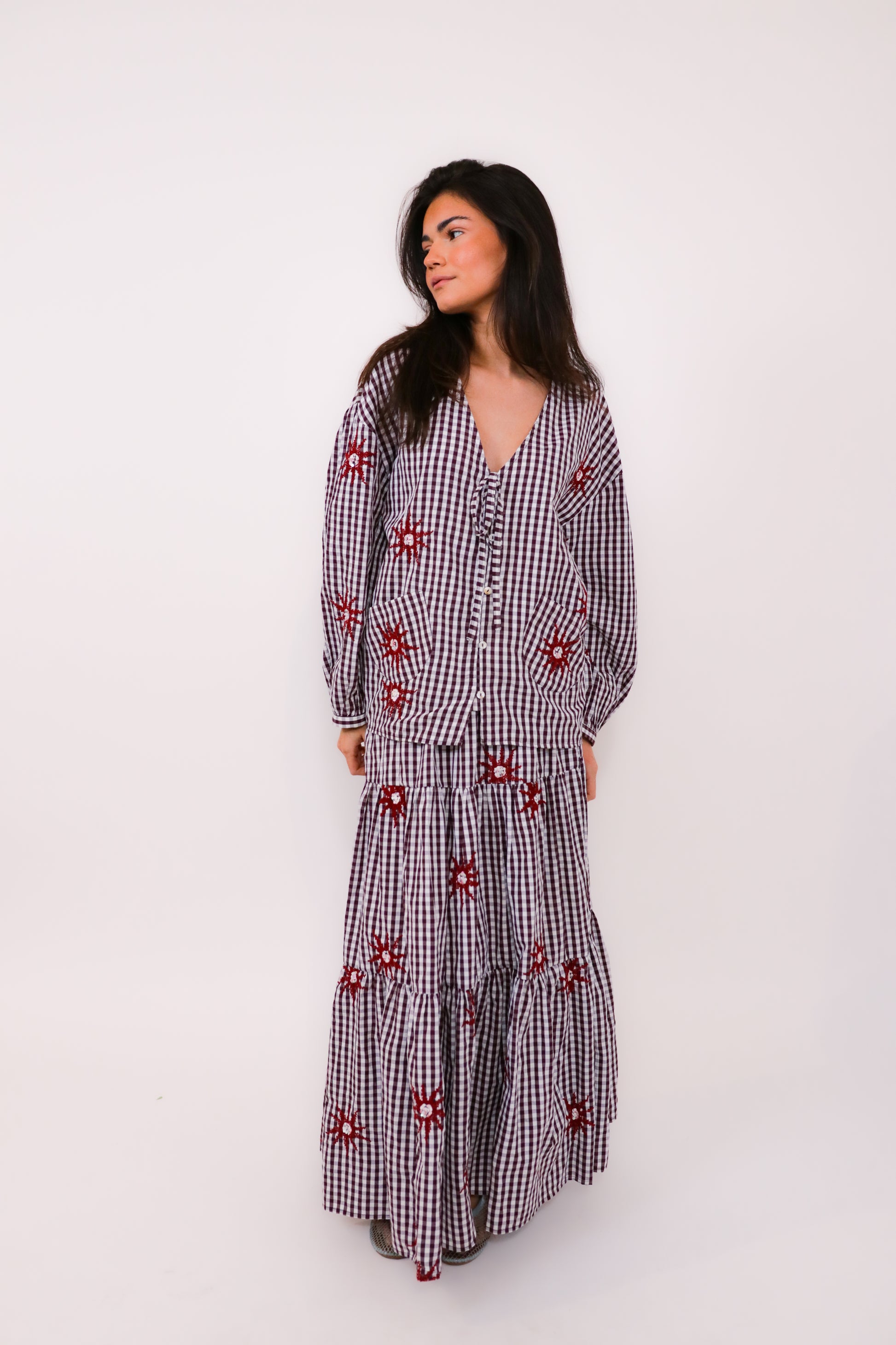 Broderies soleil avec des details en sequin.