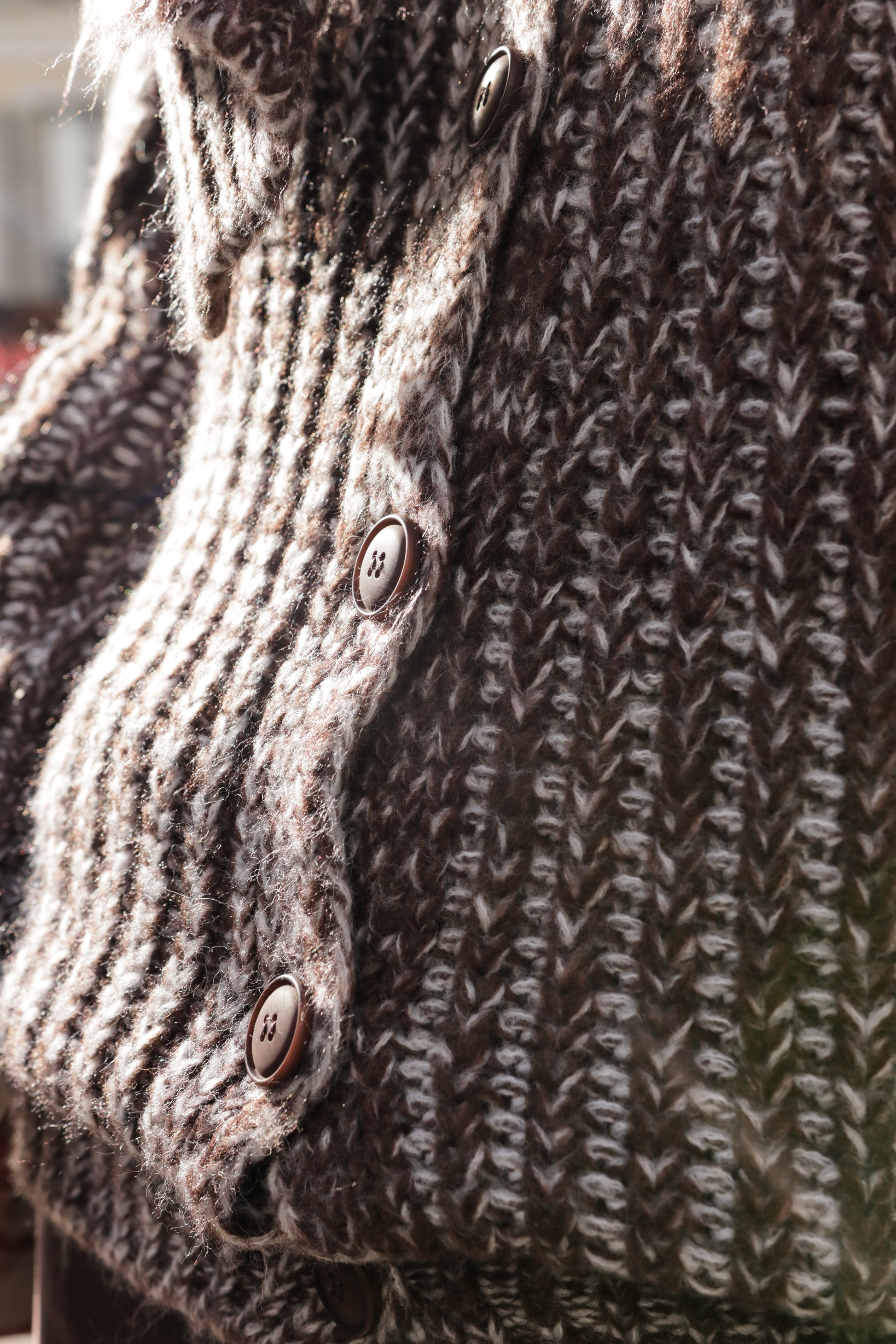 Coupe décontractée, texture tricotée agréable au toucher et boutons façon main pour un style naturel et douillet.