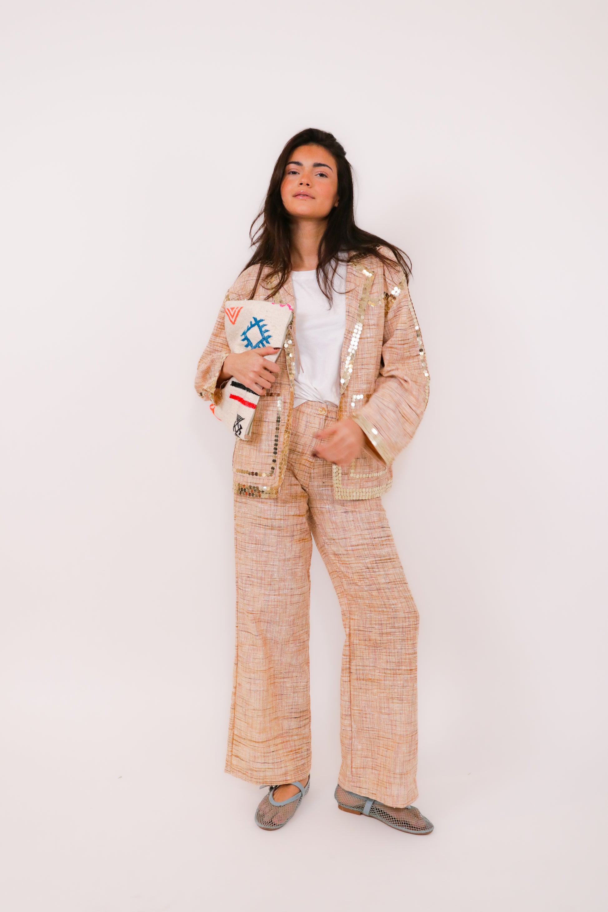Taille élastique au dos et fermeture éclair avec bouton devant