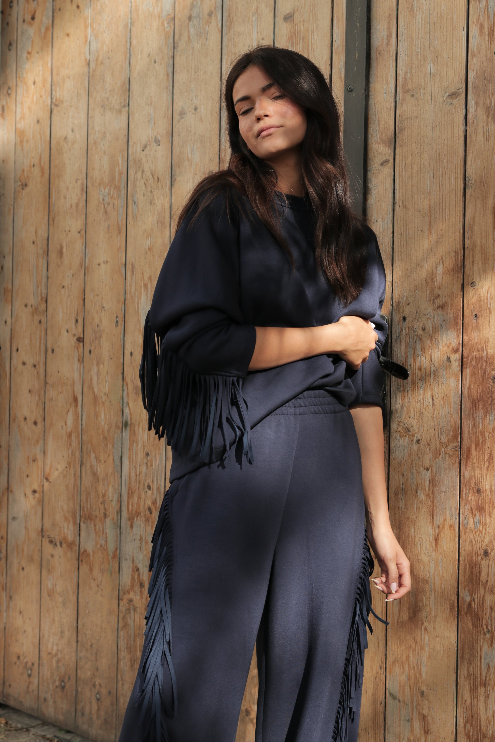 Top à manches longues orné de franges, pour une allure fluide et bohème.