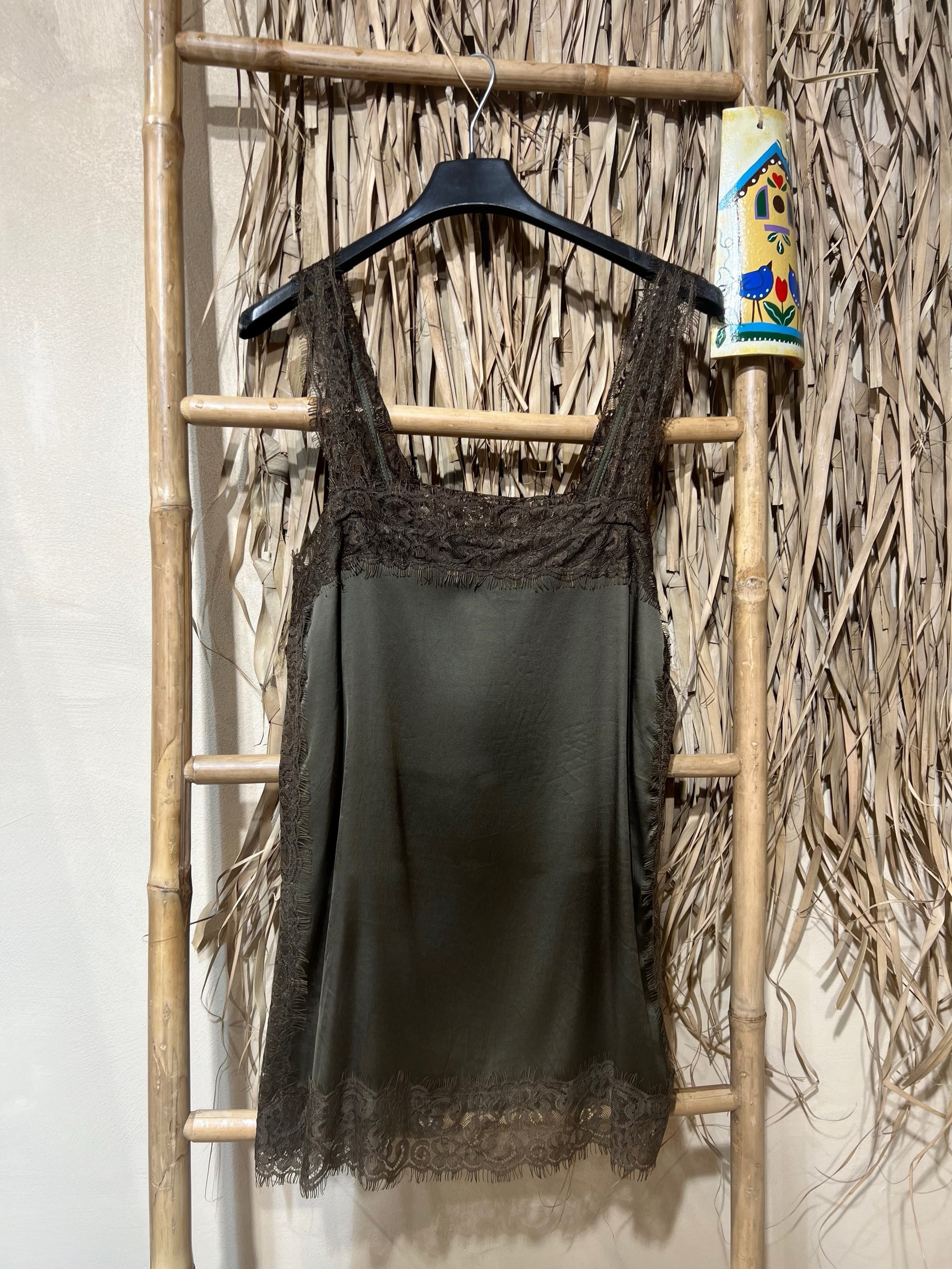 Ce débardeur satiné est délicatement bordé de dentelle fine sur l’encolure et l’ourlet, apportant une touche féminine et lumineuse sous un pull, une veste ou porté seul en superposition.