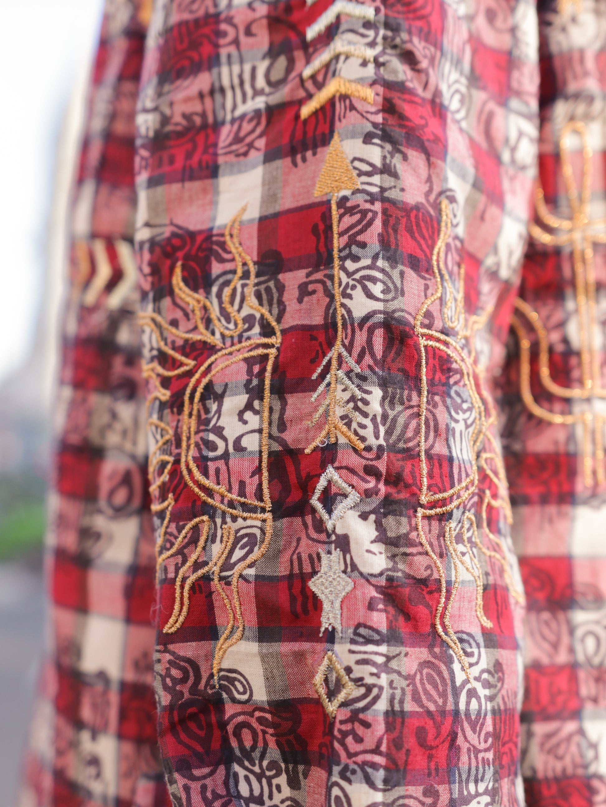 Une pièce forte qui mêle patchwork, carreaux et broderies artisanales inspirées des symboles folk.