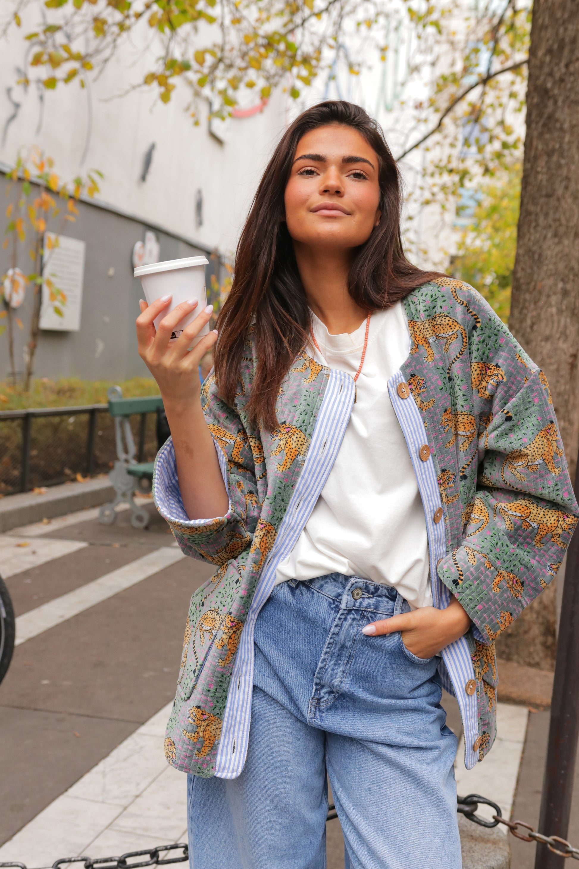 Une veste matelassée pleine de caractère, où l’imprimé léopard rencontre la douceur du coton.